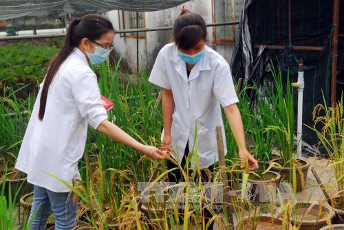 ![]() Theo dõi quá trình sinh trưởng của giống lúa chịu mặn tại nhà thực nghiệm. Ảnh: Mạnh Linh/TTXVN |