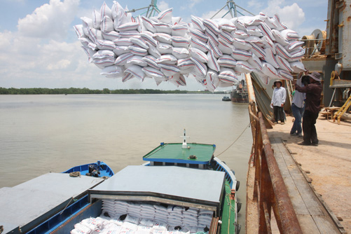 Bốc xếp gạo xuất khẩu sang thị trường Philippines tại cảng Nhà Bè (TP Hồ Chí Minh). Ảnh: Đình Huệ/TTXVN